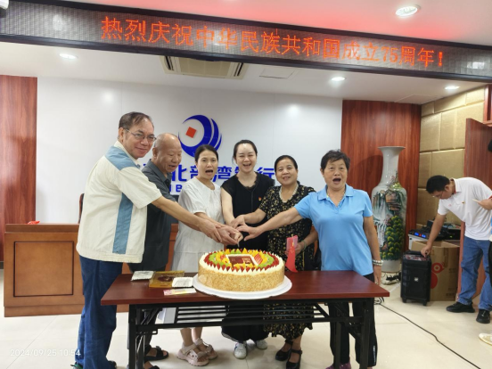 随后,宣讲团成员和社区老党员一起切蛋糕,为祖国庆生,蛋糕是明湖社区专门为庆祝新中国成立75周年而精心制作的。“感谢社区能给我们组织这次和新中国一起庆祝生日的机会。”社区老党员说道。