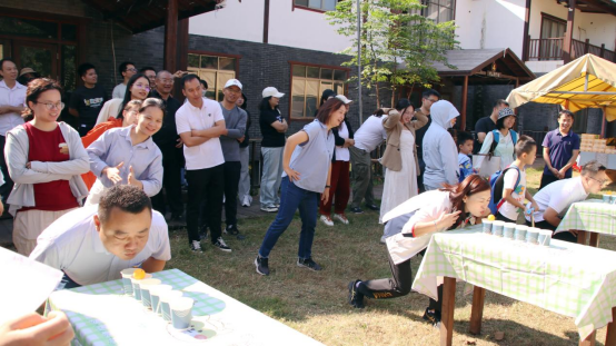 素质拓展活动环节中,全体教职工按照工会小组依次开展珠行万里、一圈到底、车轮滚滚等趣味活动,在响亮的口号和活跃的氛围中,各个队伍轮番对决、奋力拼搏,其他成员在一旁呐喊助威,将活动气氛推向高潮,充分体现了学院团队的凝聚力和荣誉感。