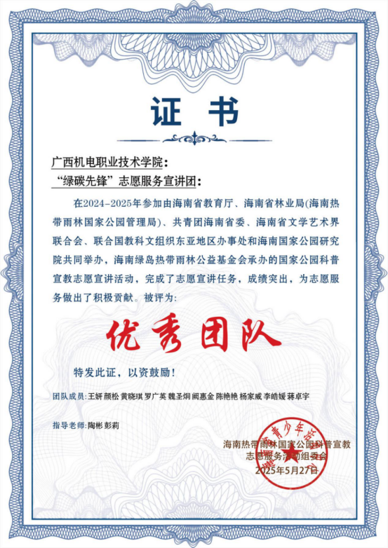 在2024年国家公园科普宣教志愿服务行动中,万象城官网师生积极响应号召,组建志愿服务团队,以“守护国家公园”为主题,深入校园、社区及自然保护地开展科普宣讲活动,充分展现了机电学子的责任担当与青年风采。未来,学校将持续深化志愿服务与社会实践育人功能,引导更多师生积极投身生态文明建设,为生态文明建设贡献青春力量!