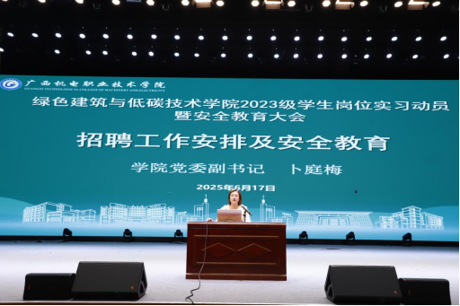 卜庭梅副书记重点强调了实习安全保障。她系统介绍了线上线下招聘会的安排,提醒学生通过正规渠道获取招聘信息,增强防诈骗意识。针对实习期间的安全管理,她从纪律规范、交通安全、财产安全及职业操守等方面提出具体要求,叮嘱学生们提高自我保护意识,确保实习安全有序。