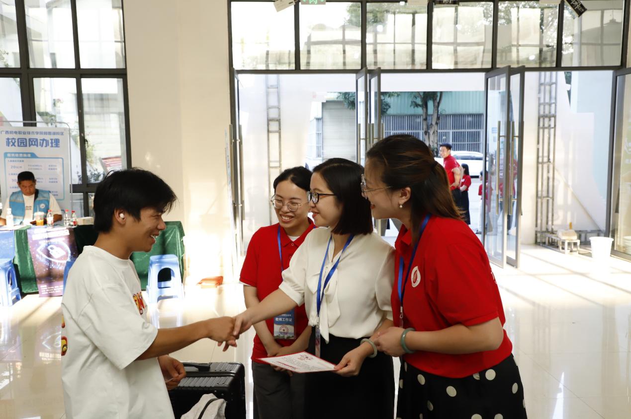 为保障新生安全便捷报到,学院分别在学校北门、西门等设立新生接待点,安排学生志愿者在各接待点接送新生至报到处。学生志愿者们穿着学院特色马甲,举着醒目的引导牌,穿梭于校园各处,热情地帮助新生指引路线、搬运行李……成为校园里一道靓丽的“风景线”。