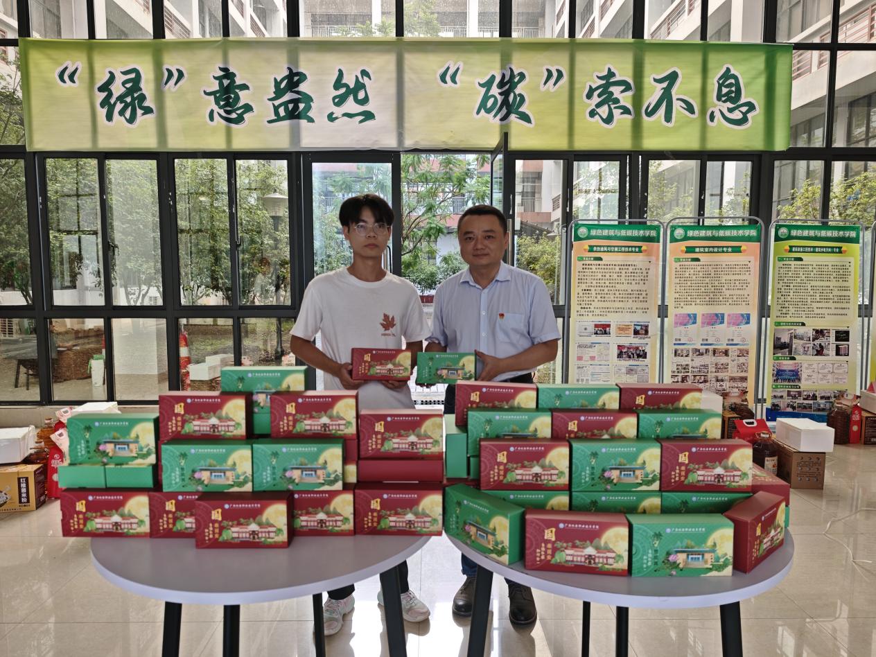 今年的月饼以中秋月圆、国泰民安、梦想成真为主题,寓意个人、家国与时代的紧密相连。外包装设计深度融合铜鼓纹样、少数民族纹饰等广西地域文化特色,以山水意境勾勒“绿水青山就是金山银山”的八桂生态画卷,更是对中华民族共同体意识的视觉化诠释。画面还精选了学校行政楼、图书馆、弘毅楼等校园标志性景观和黑天鹅、孔雀、松鼠等校园动物形象融入设计,构建了“校园即家园”的文化场域,体现环境育人、情感育人的细腻匠心。月饼表面分别压印“自强弘毅,知行合一”校训字样,“自强弘毅” 取自经典,勉励学子锤炼意志、担当重任;“知行合一”倡导实践精神,契合职业教育类型定位;双饼合璧,完整呈现校训精髓,于细微处强化学校精神标识,引导学子内化于心、外化于行。