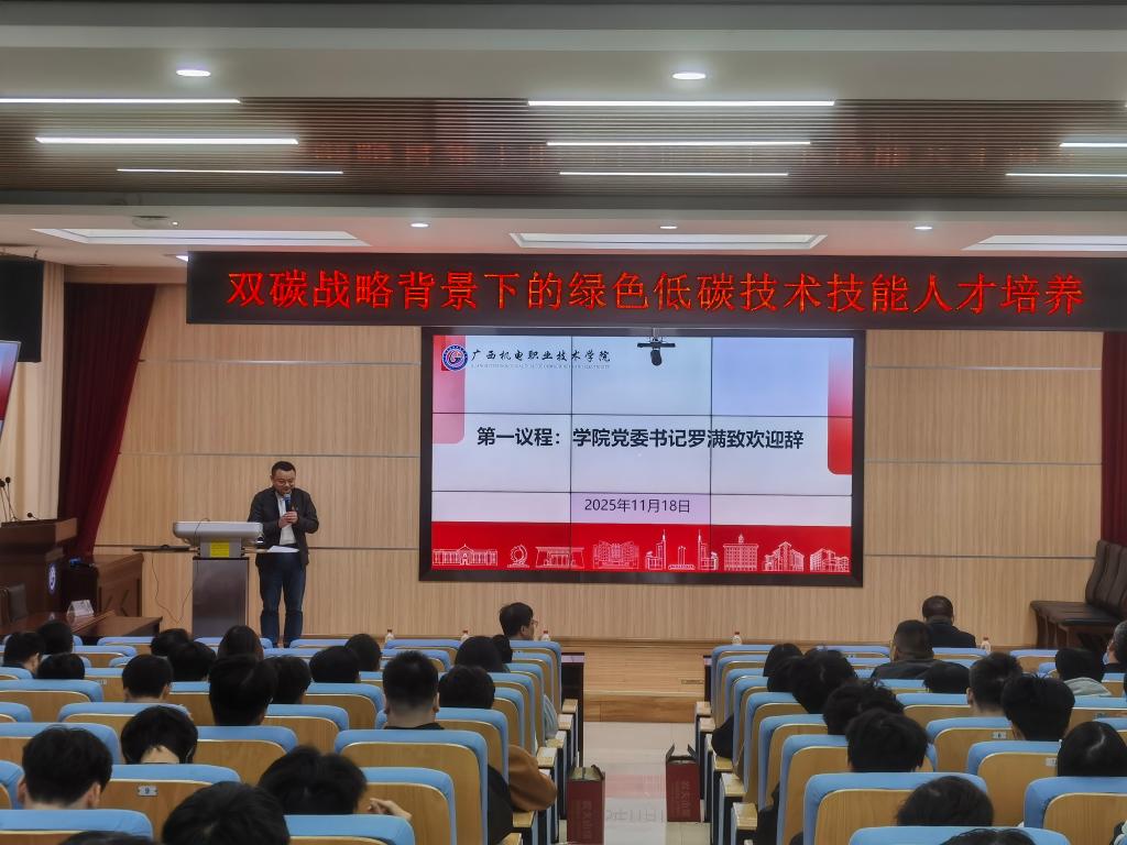 2025年11月18日下午,广西大学卢苇教授应邀莅临awc77万象城官网绿色建筑与低碳技术学院,在第六教学楼第二学术报告厅开展以“双碳战略背景下的绿色低碳技术技能人才培养”为主题的专题讲座。学院党委书记罗满、供热通风与空调工程技术专业带头人刘义军教授、学院办公室主任唐珊珊、教师及学生代表共同参会。