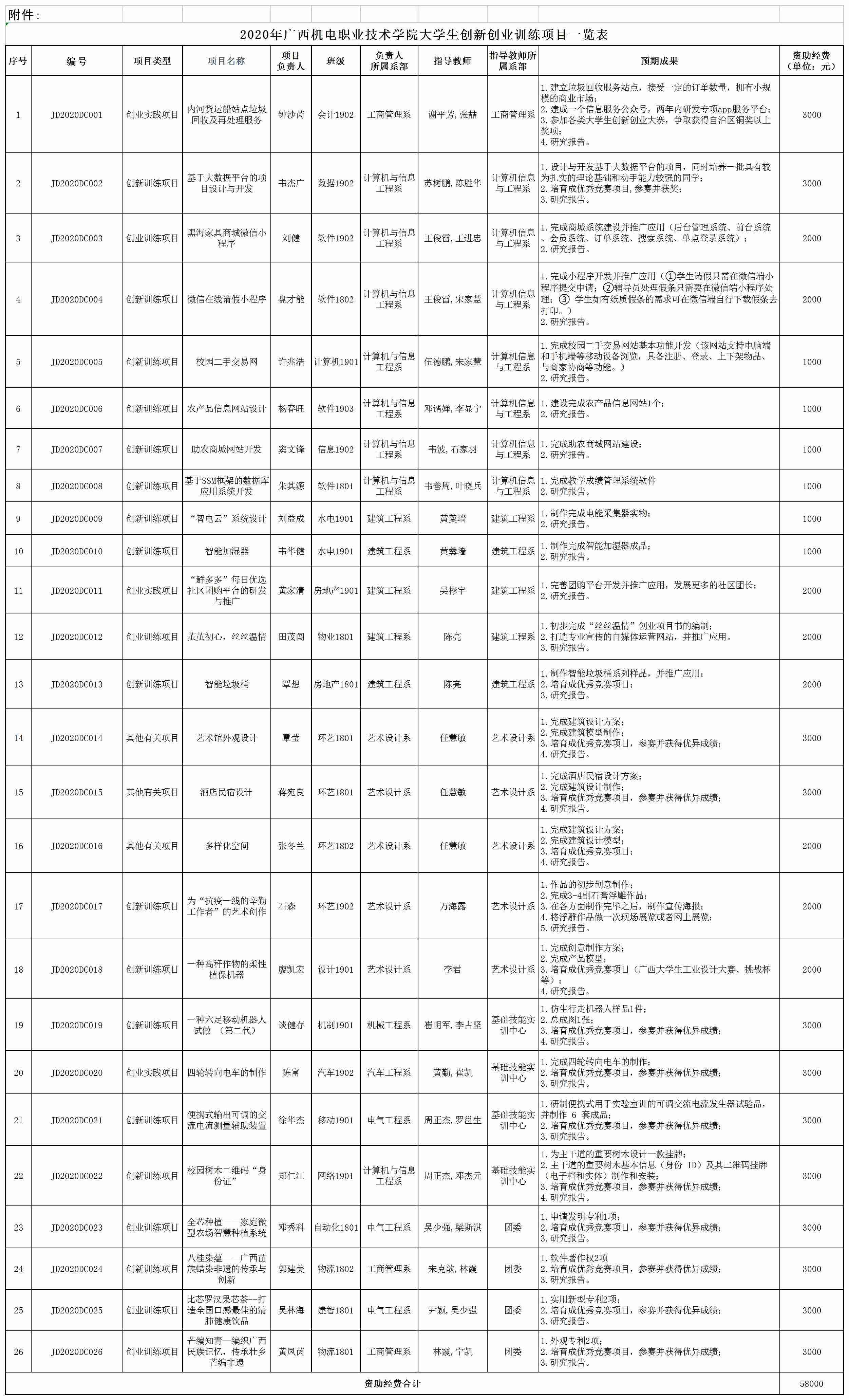 2020年awc77万象城官网大学生创新创业训练项目