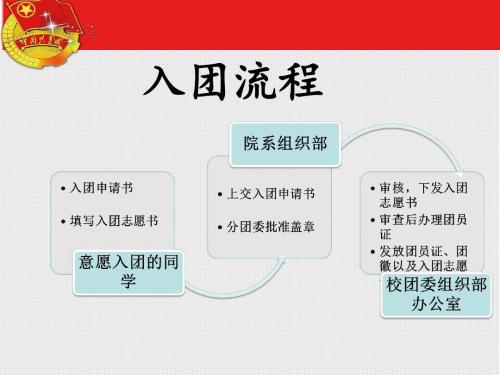入团流程 1、申请人向团支部提出书面申请 申请内容包括:本人简历,本人对团组织的认识,入团动机和努力方向等。 2、找提出入团申请书的青年谈话,提出希望与要求。 3、建立联
