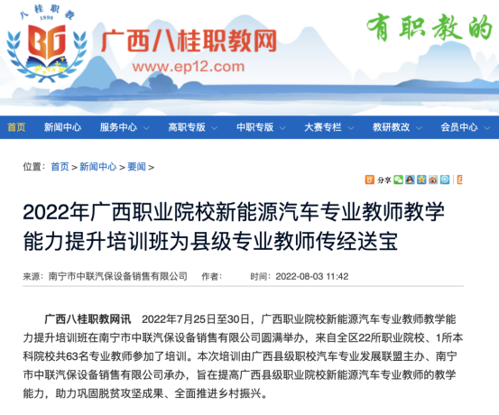 9 广西八桂职教网报道:《2022年广西职业院校新能源汽车专业教师教学能力提升培训班为县级专业教师传经送宝》