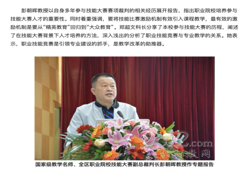 5 《广西八桂职教网》报道:成果负责人在职业院校大赛背景下我区职业院校教育教学改革及人才培养模式创新研讨会上做专业建设主旨发言