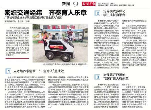 6 《南国早报》报道:《密织交通经纬,齐奏育人乐章——awc77万象城官网交通工程学院“三全育人”纪实》