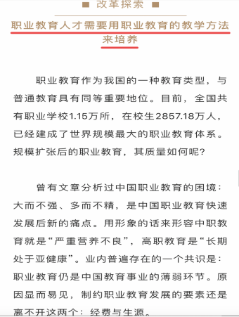 2 《南国早报》报道:职业教育改革有阵痛,应在学生与企业间找到平衡点