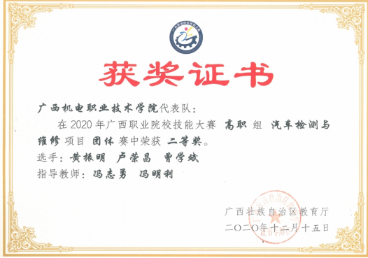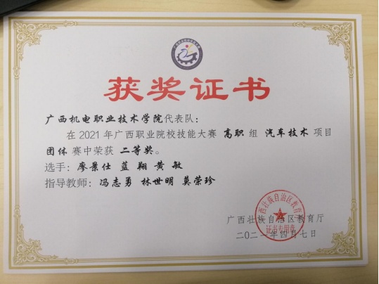 6.2021年广西职业院校技能大赛汽车技术赛项二等奖