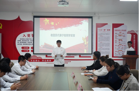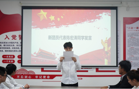 ▲新团员陈宏涛同学代表新团员发言