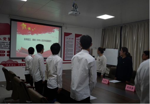 由学院四名团员出旗,汽车工程学院学生党支部周伟一老师带领新团员面对团旗进行了庄严的入团宣誓。