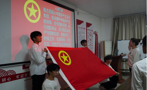 《团章》中规定:新团员必须在代表着团组织的团旗下,举行一次严肃、庄严而富有教育意义的入团宣誓仪式。新团员们向团旗立正,右手握拳,举过右肩,以洪亮的声音庄严宣誓。新团员们的铮铮誓言,彰显着新时代青年的青春热血。