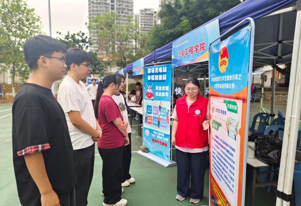 在招聘会现场,针对学生实际和所处年级,我院团委针对大二的团支部:重点帮助学生强化就业意识、明确就业发展方向,重点帮助学生提升对个人价值实现、职业发展规划等方面的理性认识。对毕业年级团支部:重点帮助学生把握就业方向、提升就业能力等。职业生涯规划咨询专区前学生有序排队,我们老师会为在校生及应届毕业生提供一对一的职业生涯规划咨询服务,根据个人兴趣爱好、专业背景等因素制定合理的职业发展路径。