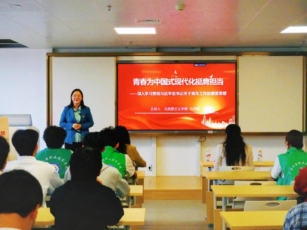 10 月 31 日,汽车工程学院第七期“青马工程”陶冶班开班典礼如期举行。为引导青年学员坚定理想信念、明确时代使命,学院特别邀请马克思主义学院石月皎教授,以《青春为中国式现代化挺膺担当》为题,为全体学员讲授开班第一课,为青春奋斗注入思想力量。