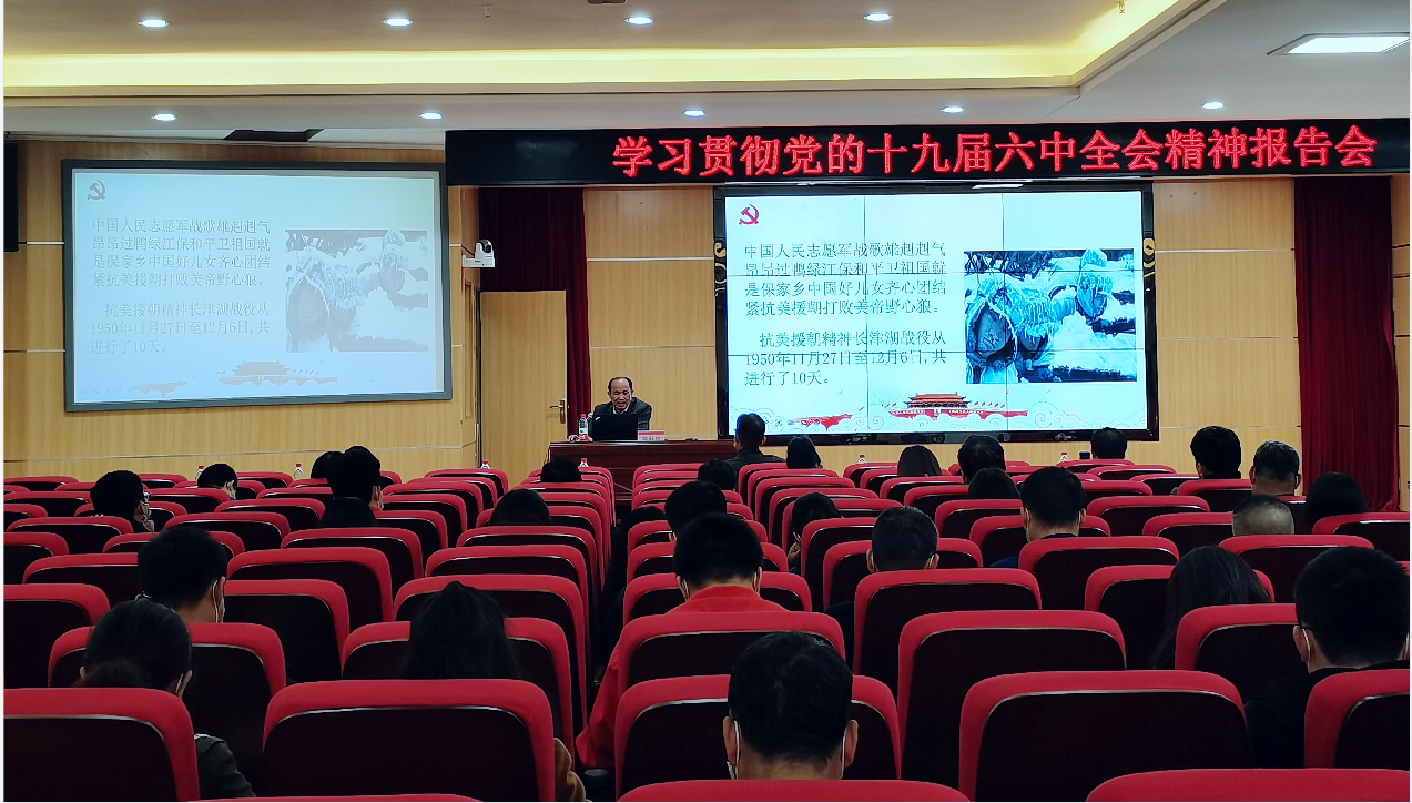 报告会上,学校党委副书记陈科鹤开篇点题,从“五座丰碑”、“七一讲话”、“从1到10、抓住联系,把握重点”等三个方面生动解读了党的十九届六中全会召开的历史背景和意义,他指出,党的十九届六中全会是在重要历史关头召开的一次具有重大历史意义的会议,对推动全党统一思想、统一意志、统一行动,产生重大而深远的影响。并从以下几个部分就党的十九届六中全会精神进行了详细介绍和生动解读。