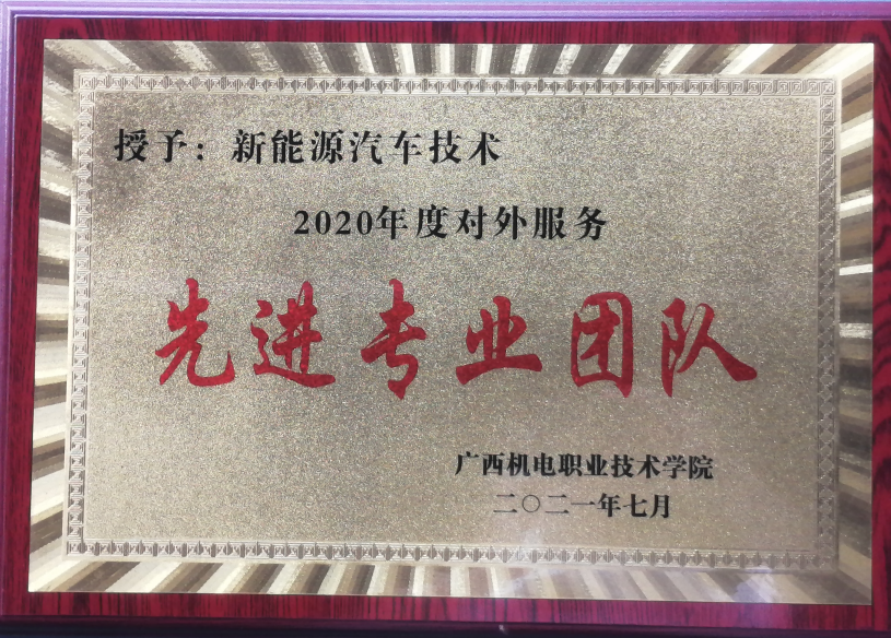 “新能源汽车技术”荣获学校2020年度对外服务先进专业团队