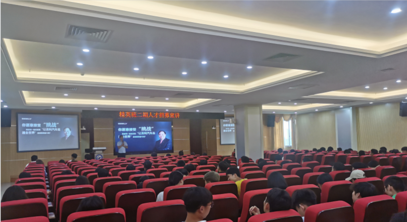其次,吉利公司王经理,开展了吉利精英班(第二期)人才招募宣讲,精英班将面向企业相对高端岗位定制课程,精英班同学毕业进入企业起点岗位比同类人才高一到两档。宣讲后,现场有五十多名同学意向加入精英班。