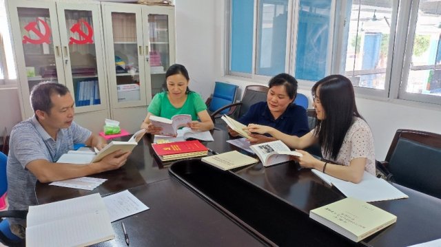 其次,彭朝晖书记组织全体与会党员一起学习党史教育“四本指定书目”——习近平《论中国共产党历史》、《毛泽东、邓小平、江泽民、胡锦涛关于中国共产党历史论述摘编》、《习近平新时代中国特色社会主义思想学习问答》、《中国共产党简史》。强调党员干部要领读、带头解读,并做好在群众中的宣传工作。