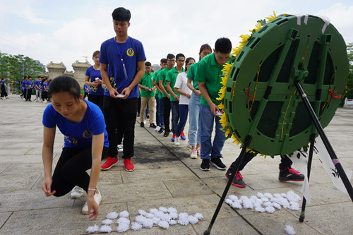 上午9点,两系成员到达广西烈士陵园,全体成员面对纪念碑整齐站立,在两系主持人的共同主持下扫墓活动正式开始。在对革命先烈的功绩进行缅怀之后,由两系团学代表向纪念碑进献花圈并且全体成员面对纪念碑默哀三分钟,随后在主持人的领读下宣誓,重温入团誓词并庄严承诺将努力学习,继承和发扬革命先烈的遗志,为祖国的建设和发展积极奉献。最后,所有同学在纪念碑下怀着对先烈的敬仰,纷纷献出自己的小白花。