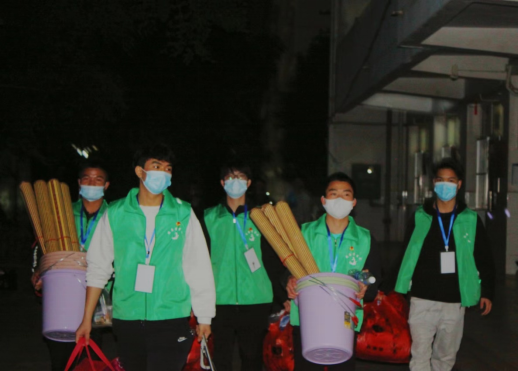 志愿者们整装待发,为次批返校需隔离的同学们做好接待的准备