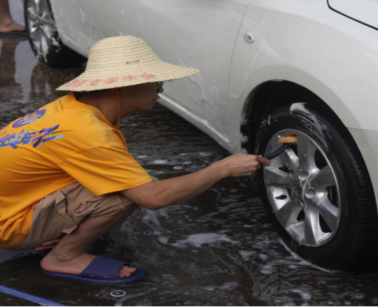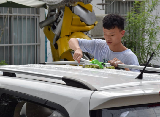 每辆的车轮车顶都被小伙伴们轻轻松松的清洁干净。