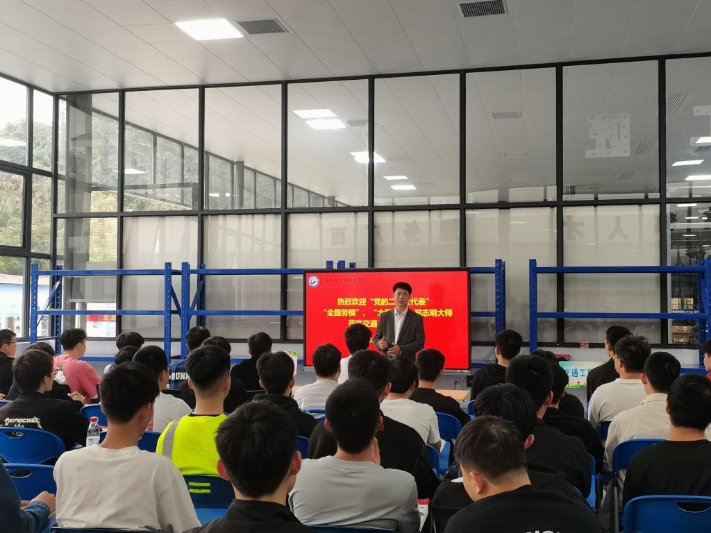 在与同学们见面和交流的过程中,郑志明大师积极分享了自己作为党的二十大代表在习近平总书记参加广西代表团研讨交流时汇报工作的亲身经历,并用现身说法向同学们分享了自己如何从一名普通钳工成长为“大国工匠”的心路历程,倾情讲述了无数技能工匠们,如何立足岗位,以匠心求创新,积极推动中国智能制造走向世界的感人故事。当了解到现场参加实训的学生们下半年即将即将步入岗位实习阶段时,郑志明大师勉励同学们,一定要深入学习领会党的二十大精神,坚定信心,树立目标,主动练就过硬的技术本领,以实际行动落实党的二十大精神,为推动区域产业发展、建设制造强国作出自己的贡献。