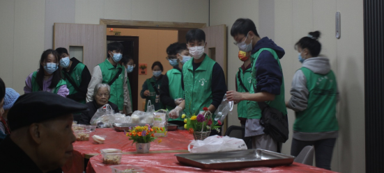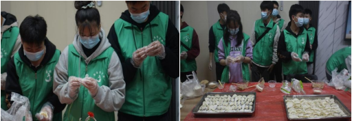 志愿者们刚一来到敬老院,就受到了敬老院领导和老人们的热烈欢迎。他们展露出开心的笑颜,并对志愿者们送来的生活用品表示感谢。随后,志愿者们分工协作,为老人们尽一份绵薄之力。有的帮助爷爷奶奶们打扫卫生、清理垃圾,让生活环境更加温馨、舒适。有的细心的女同学帮助老人修剪指甲、梳理头发,并为他们敬上一杯热茶。有的洗净双手撸起袖子给老爷爷老奶奶包饺子。