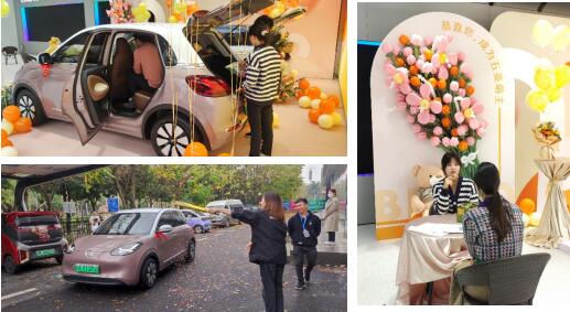 此次向车主交付的车型为上汽通用五菱股份有限公司首款五门纯电车——“缤果”,该车型目前还处于预售阶段,预计在3月底正式上市。据企业负责人兰经理介绍,这是在在南宁交付的首台“缤果”车,因此,精心策划了此次交车仪式并选择在LING LAB直营店进行。现场被鲜花、气球、布偶布置得温馨而浪漫,可见企业方的用心。