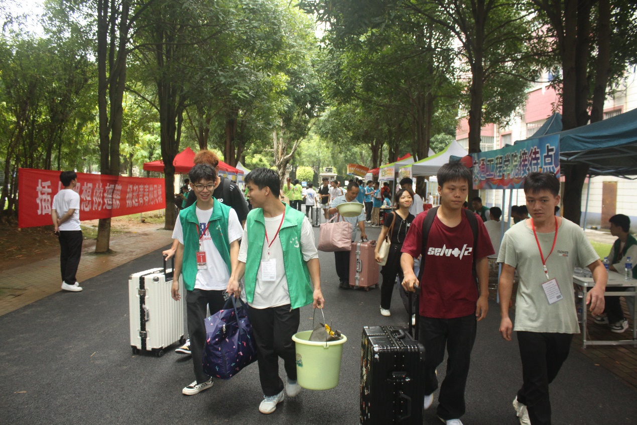 一路上,从西门,到尚学楼的绿荫小道,到交通工程学院新生注册点,再到新生宿舍楼下,绿甲随处可见。所有志愿者都以最饱满的热情和最真诚的态度迎接前来报道的学生和家长,悉心回答他们的问题,为他们指引道路,让新同学及家长顺利安心入学。新生们在工作人员的细心提醒和引导下,有序地核对信息、领取校园卡和宿舍钥匙,完成报道流程。同时,我院为每位新生准备了精致的新生大礼包,还设立绿色通道、家长休息处、医疗点等服务区,充分展现了学院的温暖和热情。迎新现场,志愿者热情细致地引导新生至报到处办理报道手续,主动协助新生搬运行李至宿舍楼,用温暖的笑容和关切的话语来减少新生初来新环境的陌生和不安,展现了我院“满“新”欢喜”的交通互助之情。