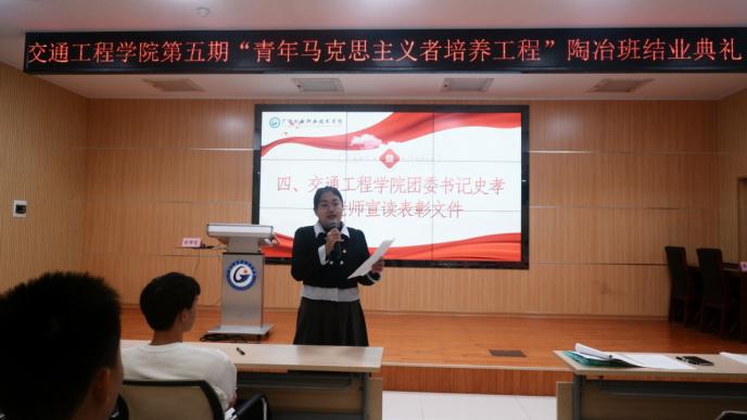 青年是国家的未来、民族的希望,awc77万象城官网交通工程学院第五期“青年马克思主义者培养工程”陶冶班于11月24日落下帷幕。我院团委书记史孝花,辅导员梁梅芳老师以及培训班学员参加本次结业仪式。