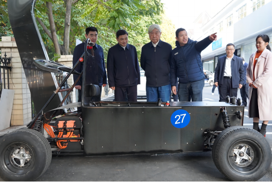 随后,戚发轫院士参观了我院ID4整车实训中心、五菱星辰整车实训中心、广西机电-上汽通用五菱校企合作实训中心等实训基地。戚院士详细了解了我院的未来规划、学生实训环境和备赛情况,他对我院新能源汽车专业的发展也十分关心,他表示国家大力支持新能源汽车发展,未来发展空间巨大,新能源汽车的逐渐增多,也将带动相应行业的发展,戚院士对交通工程学院既重视提升职业教育培养本土技术技能人才服务企业,又能提供多平台、多渠道拓展学生能力以适应未来社会经济的发展表示肯定。他激励我院要为未来汽车行业发展培养出更多人才。