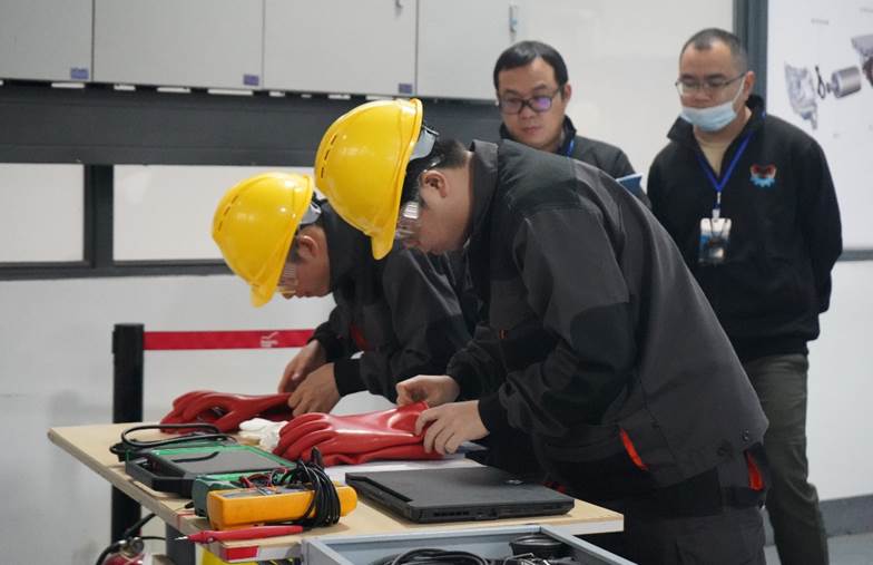 为了拿出最好的竞赛水平,在熊继芬、孔泽慧、吴慧、罗婷劼4位指导老师的悉心指导下,新能源2207班黄三旺、汽检2102班邓富林、新能源2301班蔡宇浩、汽营2301班张振林组成的参赛队克服一切困难积极备赛。按照专业、详细的训练计划,参赛团队从2023年11月开始直到比赛上场前一刻,牺牲寒假休息时间,每天都进行着高强度训练。大家反复进行学习、演练,不断发现问题、解决问题,最终取得了优异成绩,展现了机电学子应有的风采。