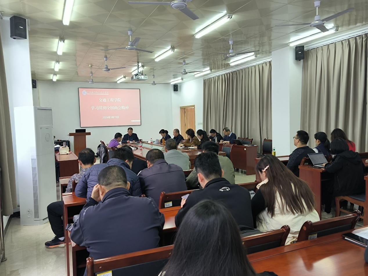 3月19日下午,我院召开学习贯彻两会精神会议,会议由书记、院长彭朝晖主持,交通工程学院全体教职员工参加。