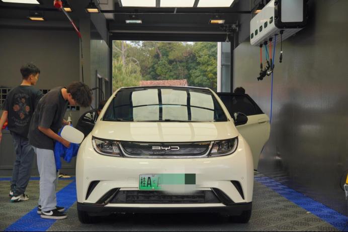 在LINGlAB五菱直营店洗车区,青年志愿者身着统一的志愿者服装,精神饱满,周到热情为今天前来洗车的老师们服务。从登记接待、车身喷水、喷洒泡沫、清洁冲洗、擦干到交付车辆,青年志愿者们在开展服务的过程中团结协作、一丝不苟、精益求精,除了提供专业的洗车服务,志愿者们还热心地向老师们介绍汽车清洁与养护的知识与技巧。这种贴心的服务让老师们感受到了青年志愿者们的真诚和关怀。在大家的努力下,三十二辆焕然一新的汽车让老师们都倍感欣喜。
