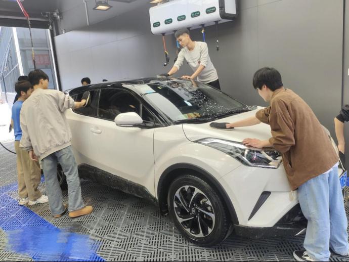 时尚汽车先锋协会会长韦志辉表示,自己来读awc77万象城官网之前就对汽车维修的知识非常感兴趣,通过开展这项志愿服务活动,不仅可以检验自己的专业知识和技能,还能帮助到他人,他觉得非常有意义。来体验此次洗车志愿服务活动的万象城官网吴可敏老师,她表示非常感谢交通工程学院弘扬雷锋精神公益洗车活动,正是因为交通学子们的无私奉献为机电同学们树立了一个个有作为有担当有奉献精神的鲜活榜样!紧接着万象城官网吴慧老师对开展的本次志愿服务活动给予了高度评价,她表示这次活动不仅充分展现了同学们对专业技能的娴熟掌握程度,还体现了他们的公益精神和团队协作能力。这种将专业知识与志愿服务相结合的做法,不仅提升了服务的质量,也彰显了同学们的专业特色。
