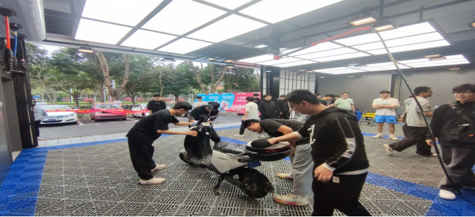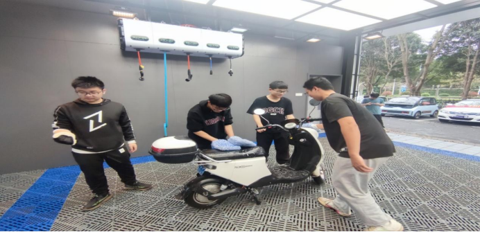 同学们清洗电瓶车