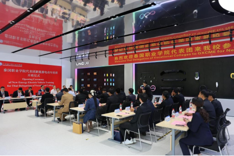 4月22日,泰国职业学院代表团新能源电动车培训班开班仪式在万象城官网汽车工程学院五菱实训中心举行。广西中华职业教育社秘书长陈礼兵和万象城官网副校长黄政艳出席仪式并发表致辞,开班仪式由校长助理黎盛寓主持。