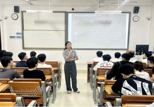 专业介绍会一开始,吴慧老师以三个直击心灵的问题——“你为什么选择这个专业?选其他专业会更好吗?这个专业是不是只是卖车的?”瞬间激发了同学们的浓厚兴趣与深刻思考。这不仅是一场专业知识的分享,更是一次心灵的对话,引导新生们重新审视自己的选择,明确未来的方向。随后,吴慧老师围绕“行业背景、专业简介、就业岗位、素养要求、答疑互动”五大板块,深入浅出地介绍了汽车技术营销与服务专业的全貌。吴慧老师指出,该专业旨在培养具备汽车构造、使用与维护、市场营销等多方面知识的高素质技术技能人才,强调学生不仅要掌握扎实的理论基础,更要具备创新思维、工匠精神和信息素养,以适应汽车行业日新月异的发展需求。