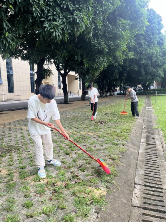 在劳动教育周里,学生们投身到实实在在的劳动实践中。他们手持扫帚和垃圾袋,穿梭于校园的林荫道上,认真清扫着每一片落叶和每一处垃圾。秋风虽凉,却挡不住他们热情的汗水。在大家的共同努力下,校园恢复了往日的整洁与美丽。
