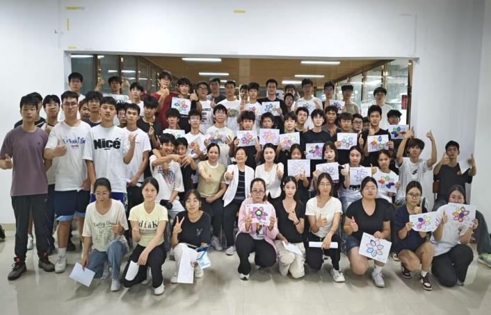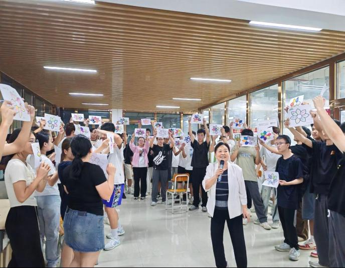 在活动现场,刘惠珍教授精心设计了一系列的互动环节,不仅向在场的心理委员和联络员们传授了实用的心理干预技巧、情绪管理方法,还引导他们深入理解心理健康的重要性,以及如何在日常学习和生活中有效识别并帮助身边有需要的同学。在认识自我互动环节,刘教授通过引导在场的同学们积极参与心理测评、自我探索等活动,帮助学生更深入地了解自己的性格、兴趣、价值观等,从而增强自我认知。在情绪管理辅导环节,刘教授教会同学们如何识别、表达、调节自己的情绪,学会用积极的心态面对生活中的挑战和困难。在人际交往互动环节,刘教授积极组织同学们参加团队合作、角色扮演等活动,帮助同学们学生进一步提高沟通能力、合作能力和人际交往技巧。在压力应对环节,刘教授积极引导同学们学会正确看待压力,并掌握有效的压力应对策略,积极保持身心健康。此外,辅导现场还设计了包括个人独唱、分组连环介绍、你问我答、绘画互赠以及合唱歌曲《我和我的祖国》等丰富多彩的情境互动。这些活动不仅活跃了现场气氛,还让学生们在轻松愉快的氛围中加深了对彼此的了解和认识。