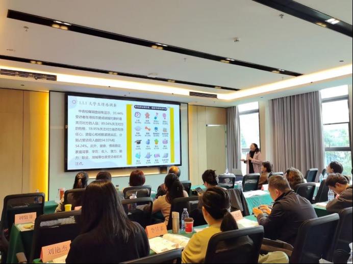 11月10日下午,李红娇副教授则针对大学生恋爱常见问题、恋爱中的人格识别、拒绝恋爱脑和PUA、提升爱的能力等主题进行了分享。李教授通过案例讲授、角色扮演等生动的教学方式,使老师们对恋爱情感咨询有了更深入地理解和掌握。