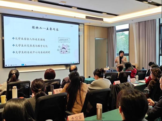 11月9日下午,范韶维副处长结合自己丰富的实践经验,就“大学生宿舍人际关系困境”、“大学生社交焦虑与搭子文化”以及“大学生的自我中心与自我封闭”等问题进行了剖析,为老师们提供了实用的解决方案和建议。