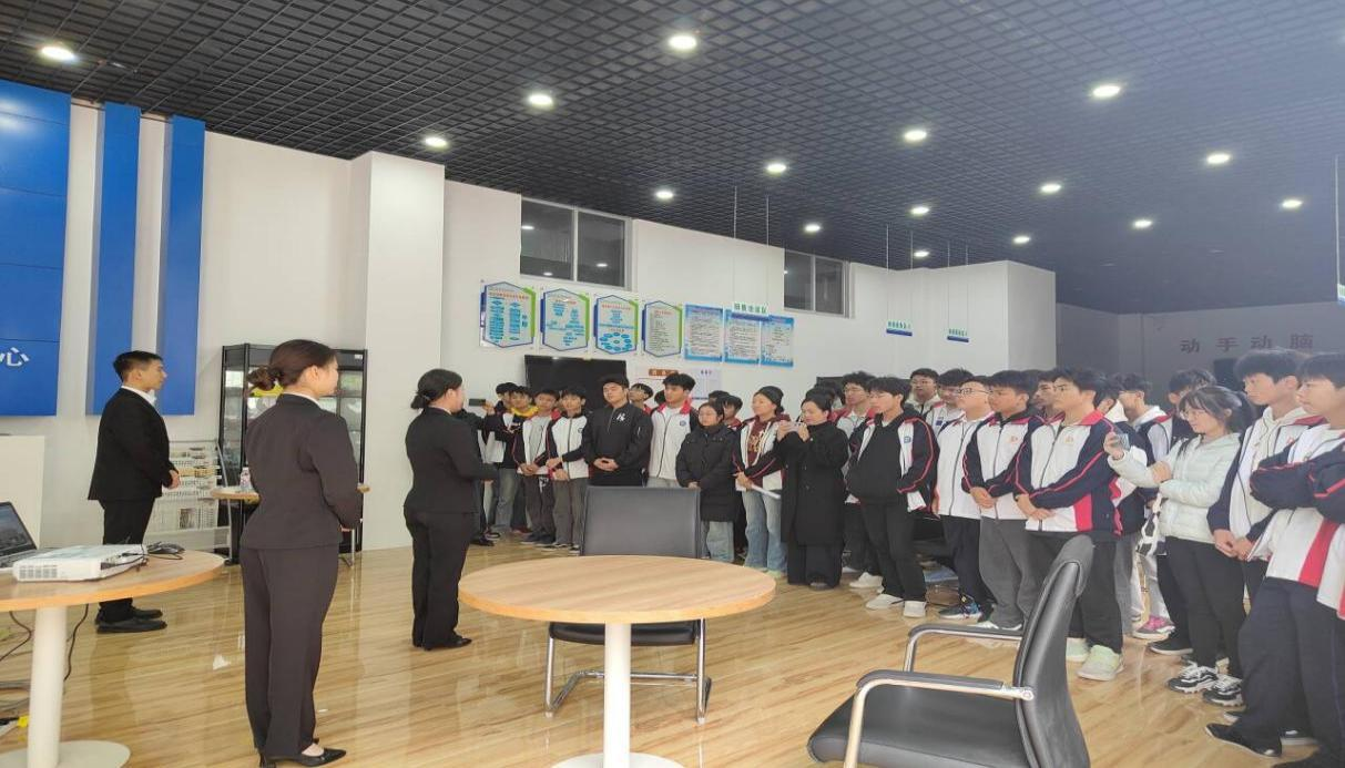 座谈会后,我院的三位同学李萌萌、陈思徽、吴文超与职教中心的50多名师生在职教中心汽车营销实训中心进行了职业技能竞赛交流展示。三位同学以“扬长补短,只为蓝电——基于数智化的蓝电E5营销策划方案”为题,分别从方案展示、现场直播演示、现场营销模拟等方面为同学们带来一场身临其境的国家级技能竞赛现场演示,让同学们对职业技能竞赛有了更深入的了解。本次交流分享,三位同学分享了自身参加国家级职业技能竞赛的经验以及心得体会,朋辈榜样的力量也激励和鼓舞职教中心的同学们积极学习、努力备赛、提升技能。