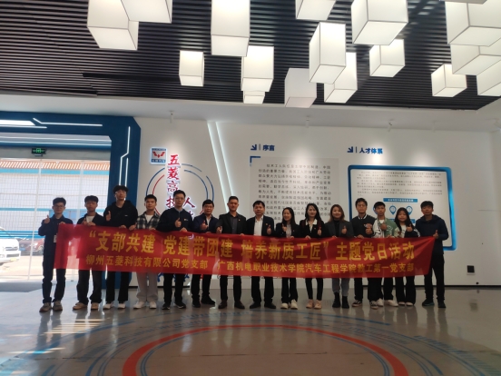签约仪式结束后,校企共同开展了“支部共建 党建带团建 培养新质工匠”主题+党建带团建活动。与会人员首先参观了工匠学院五菱高技能人才馆、大国工匠展厅,深刻感受到五菱汽车科技有限公司企业独特的文化及企业精神的坚韧持久,深刻领悟工匠精神。工匠精神,薪火传承,深悟匠心,筑梦未来。本次活动像一颗种子,在团员青年心中扎根生长,激发他们对工匠精神的传承和科技创新的追求。