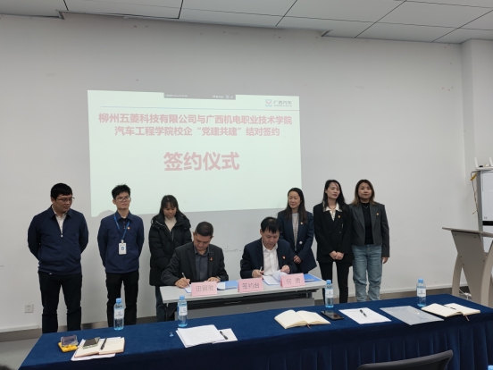 为深入贯彻落实党的二十大及党的二十届三中全会精神,进一步落实新时代党建工作“一融双高”要求,拓展校企合作新思路、新模式,营造党建共建、合作共赢的良好氛围。11月26日上午,中共awc77万象城官网汽车工程学院教工第一支部委员会与中共柳州五菱汽车科技有限公司党支部支部委员会正式签署党建共建协议。教工第一党支部书记何勇、组织委员李宣葙等6名党员及新能源2303李梦萌、汽检2402宁聪等6名团员青年一起到柳州五菱汽车科技有限公司参加党建共建活动。