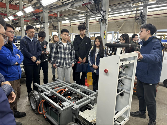 接着,党员和团员们来到柳州五菱汽车科技有限公司车辆事业部总装车间,感受着传统造车业与新媒体的融合碰撞。这里的每一款车都凝聚了五菱汽车工业的智慧与匠心,吴杰工程师向大家讲解了“智能移动储能充电车”的储能系统、充电效率、安全性能、应用场景等设计精髓。团员青年感悟了“艰苦创业、自强不息”的企业精神,对中国制造和工匠精神充满了自豪感。