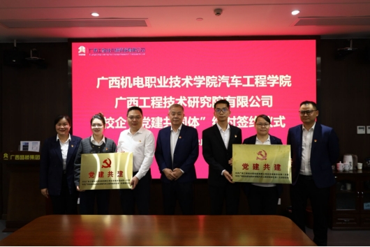 12月6日下午,我院学生第一、第二党支部赴广西工程技术研究院有限公司开展“党建共建”活动,双方就“党建共建”的具体内容进行了商定并举行了“党建共同体”结对签约仪式。出席本次活动的有我院党委副书记覃媛,党委委员、副院长徐凯、莫荣珍及学生第一、第二党支部书记、委员及学生党员代表。广西工程技术研究院有限公司党总支委员、总经理覃献军,党总支副书记、工会主席吕华健及支部书记、党员代表、机电校友代表等出席结对签约仪式。