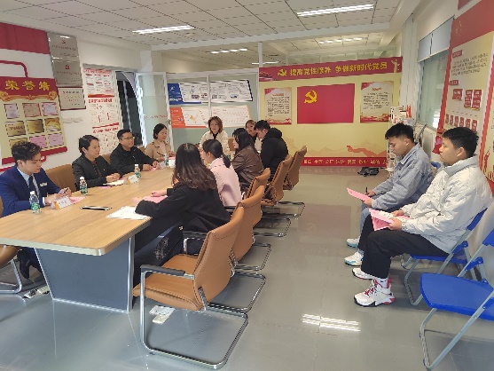 活动伊始,我院教工第二党支部书记莫荣珍对学院办学情况、人才培养及党建活动等方面进行了介绍,广西机电设备有限责任公司党委副书记周俊玲详细介绍了公司的基本情况、人才需求情况及党建工作经验。经过介绍,莫荣珍表示,学院非常重视与企业的合作,希望通过支部共建,凝聚双方力量,共同培养高质量技术技能人才。
