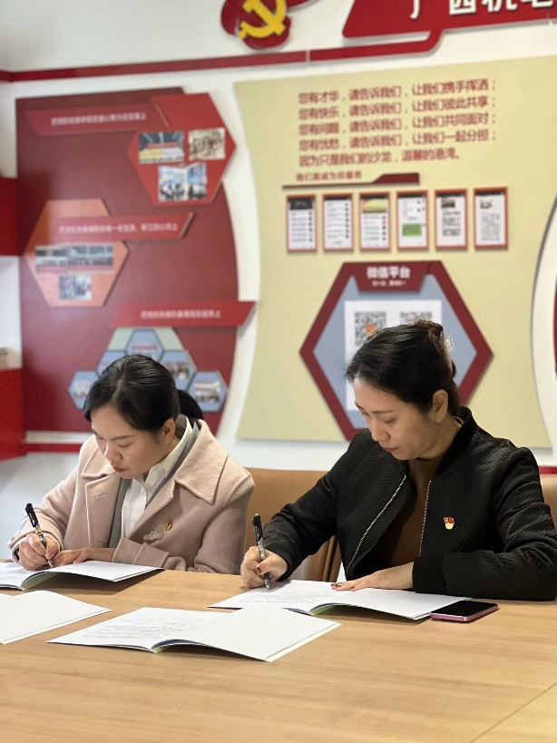 2025年1月9日下午,我院教工第二党支部赴广西机电设备有限责任公司党委开展党建共建活动,出席本次活动的有我院教工第二党支部书记、汽车工程学院副院长莫荣珍,教工第二党支部党员及学生党员代表;广西机电设备有限责任公司党委副书记、副总经理周俊玲,广西机电党支部书记及校友员工代表。双方共同探讨了党建共建的具体内容并举行了校企“党建共同体”结对签约仪式。